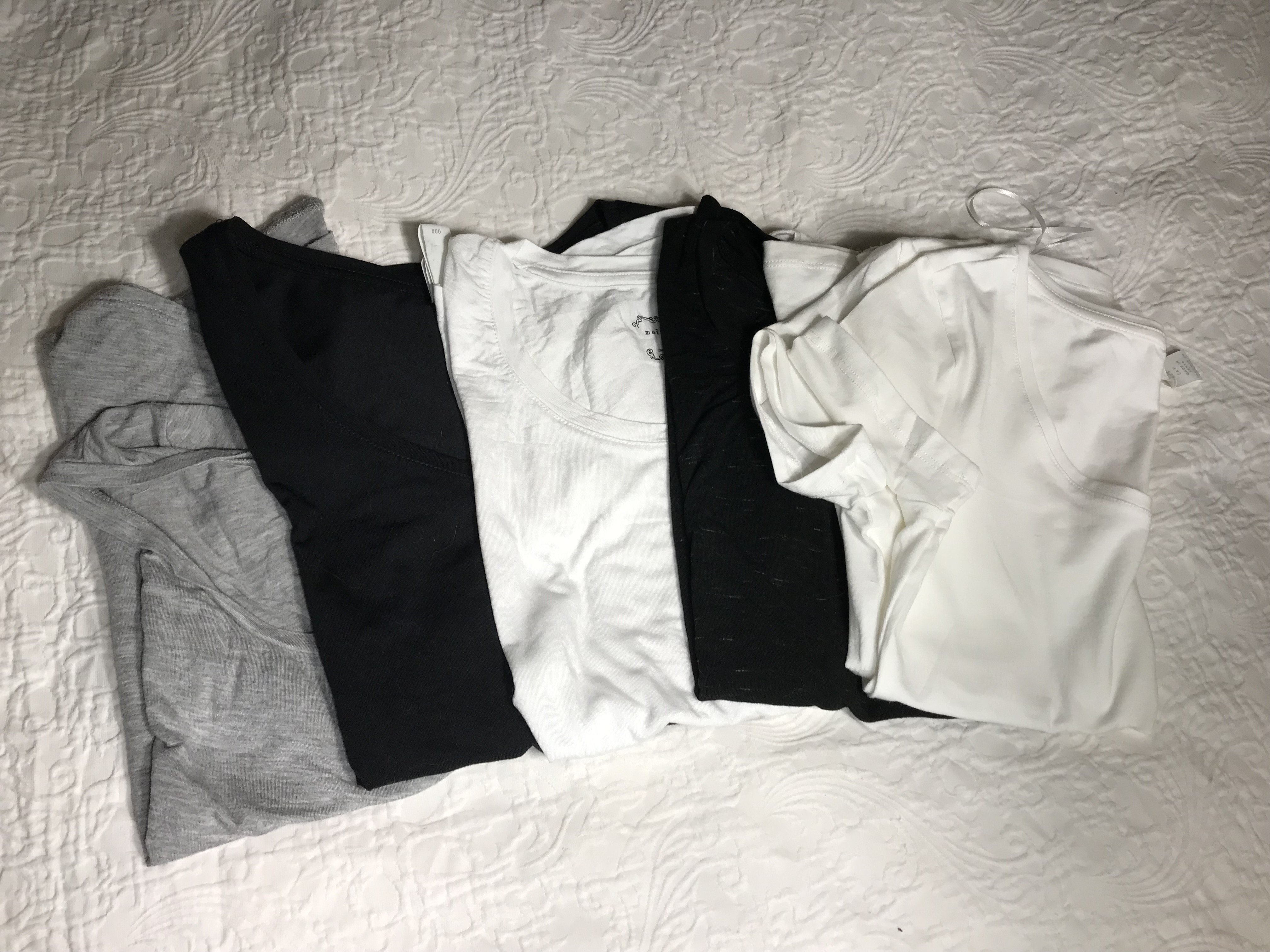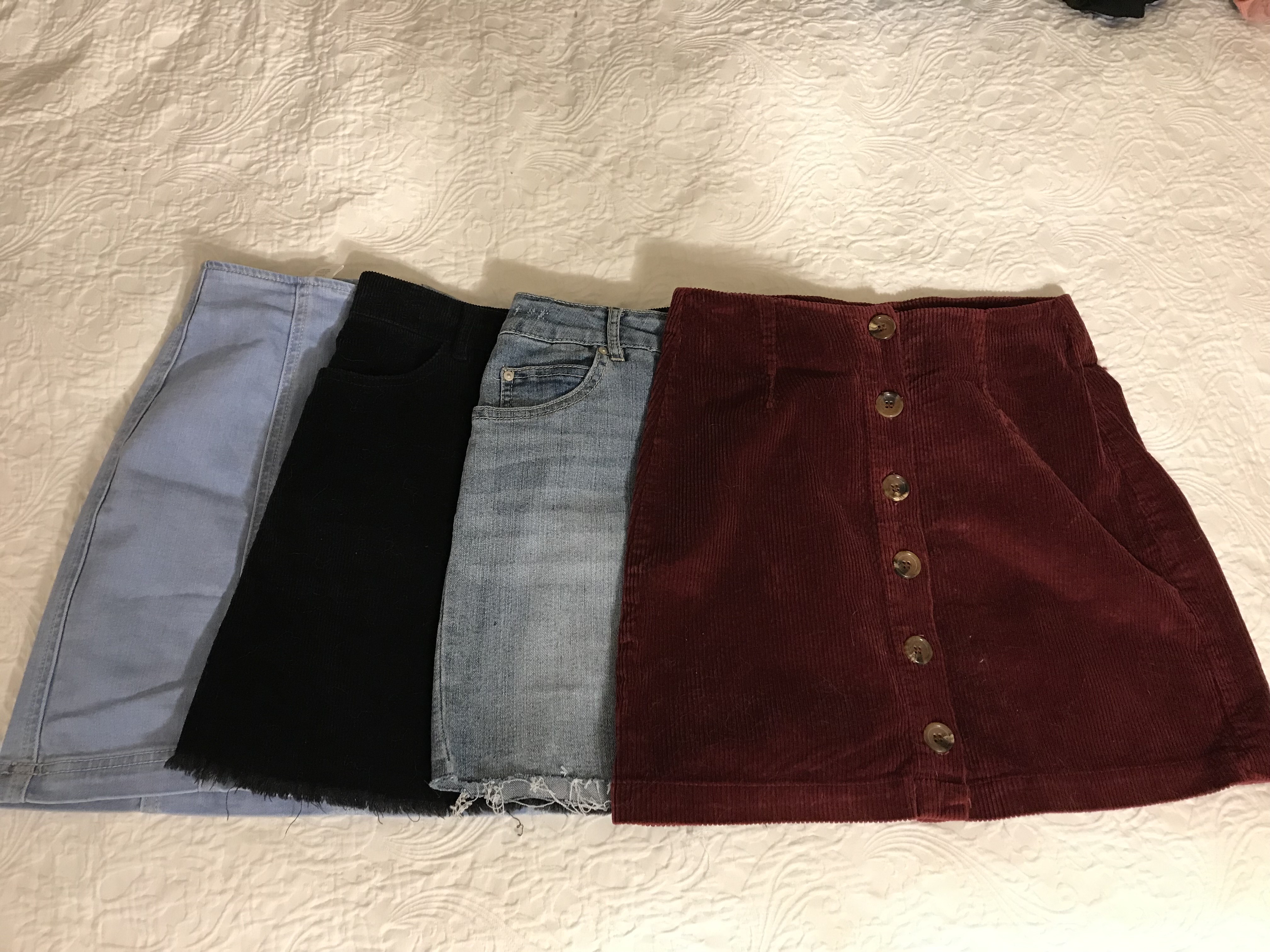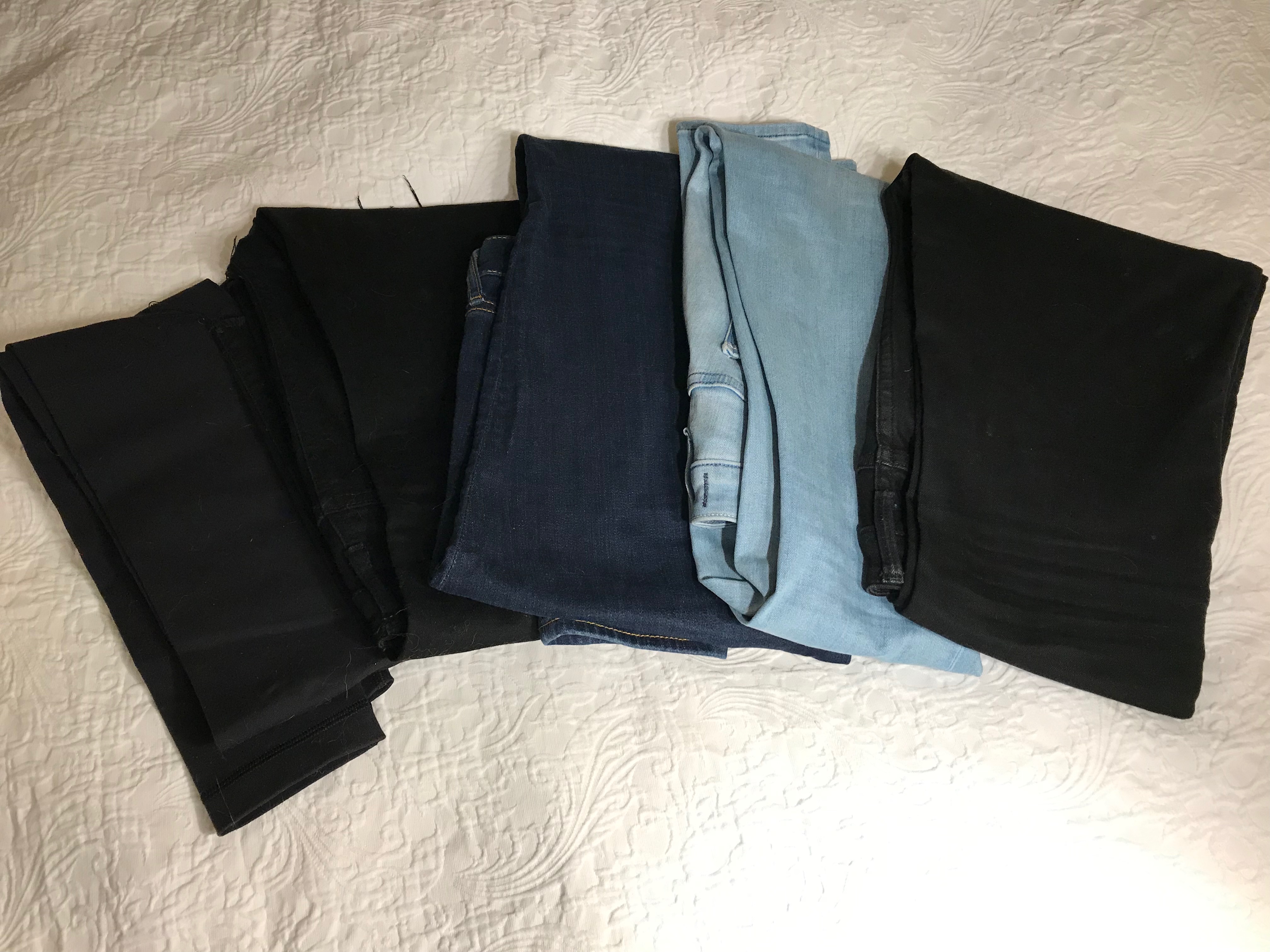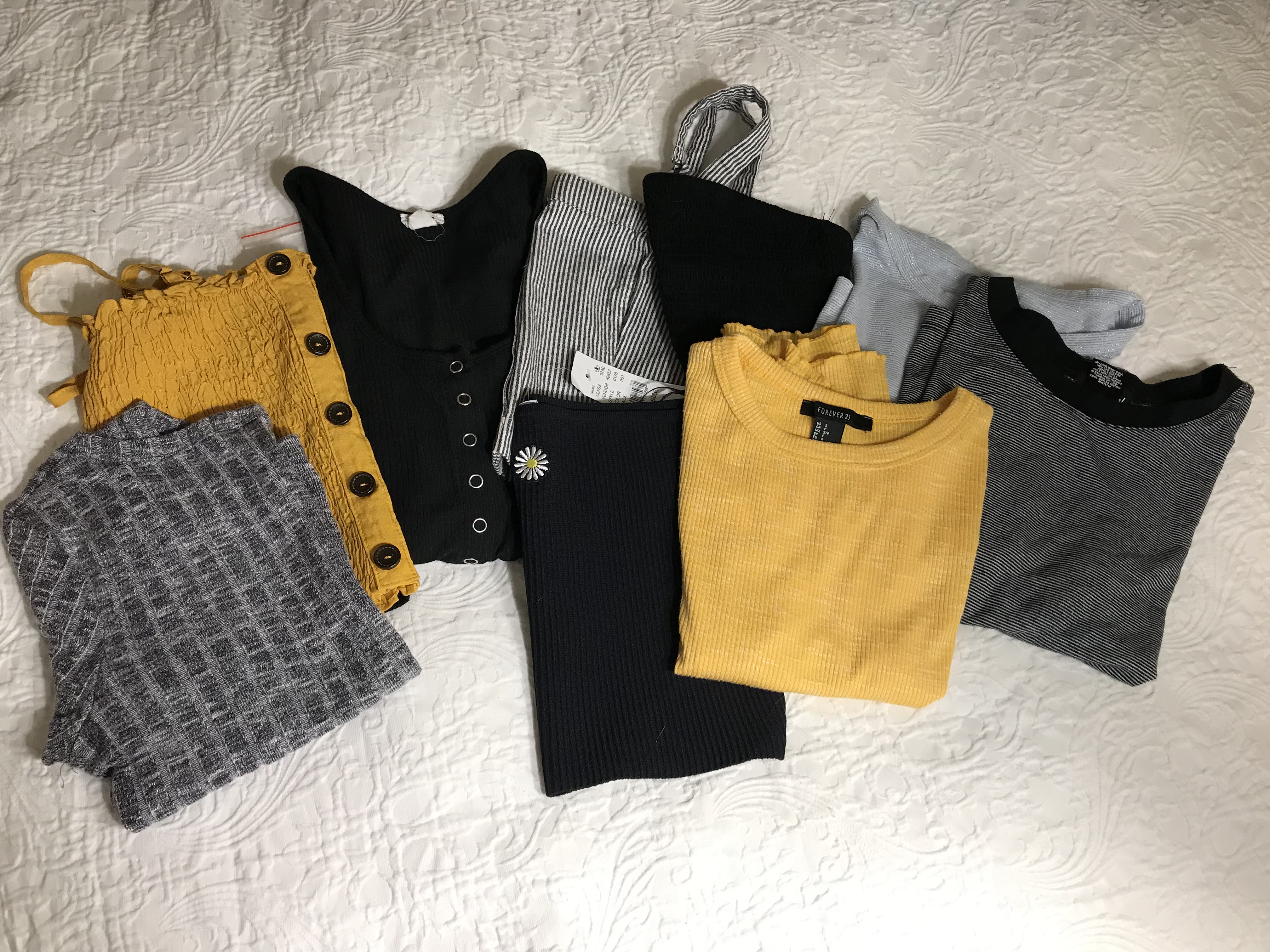 • shoes: rain boots, two pairs of sneakers, a pair of tennis shoes, flip flops, and a pair of heeled booties